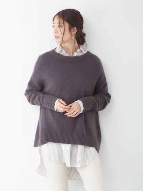柔らかくてふんわりとした毛足が女性らしい印象のボトルネックニット。