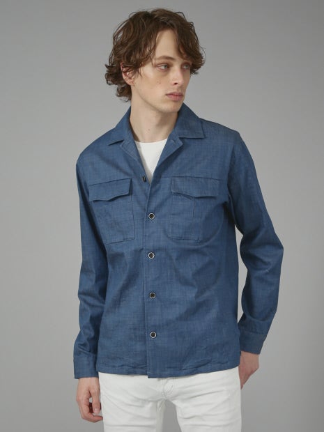 【素材】素材にはコットン・ポリエステル・ポリウレタンストレッチを使用しており、シャンブレーの特徴でもある霜降り感を表現しております。【デザイン】ストレッチの効いたシャンブレーシャツブルゾン。すっきりとしたシルエットでスマートに着こなせる一枚。両胸にレイアウトされたフラップポケットがアウターライクな見た目に。メインから羽織りとしてオールシーズンで活躍してくれる着回し力の高い一着。