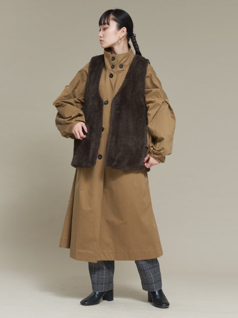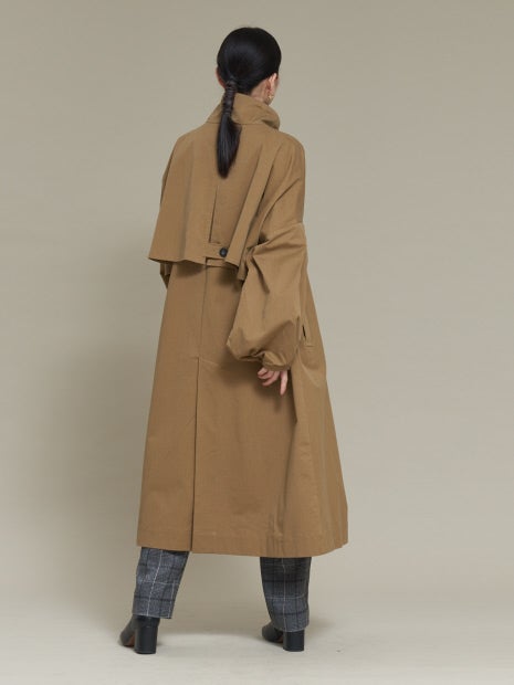 ボリュームスリーブがポイントのスタンドカラーコート。