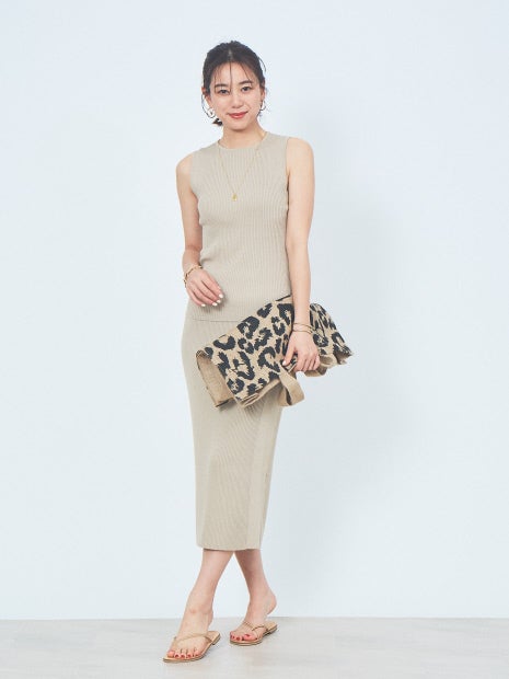 同シリーズのノースリーブニット(NO,31420040007)とのセットアップスタイルもおすすめです。