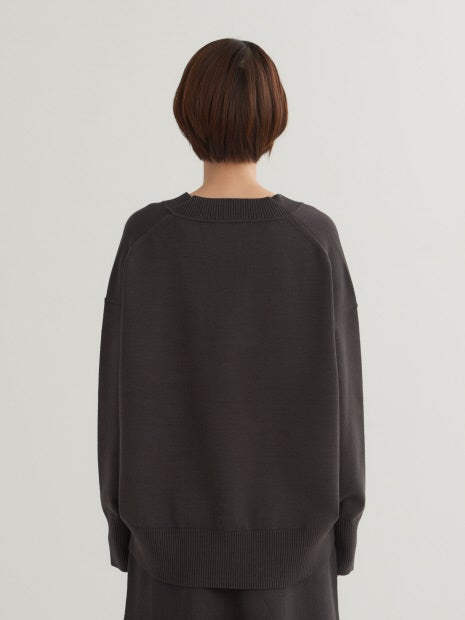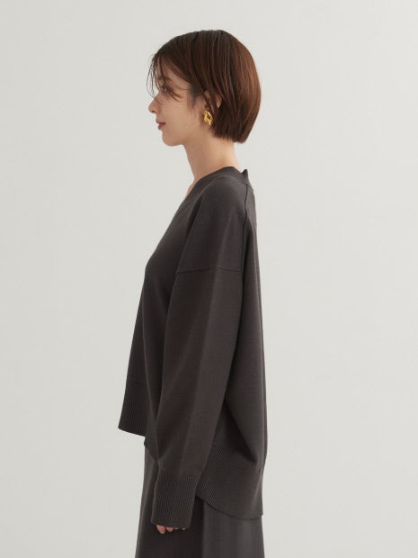 衿のラインに拘わった、抜け感のあるニュアンスニット。