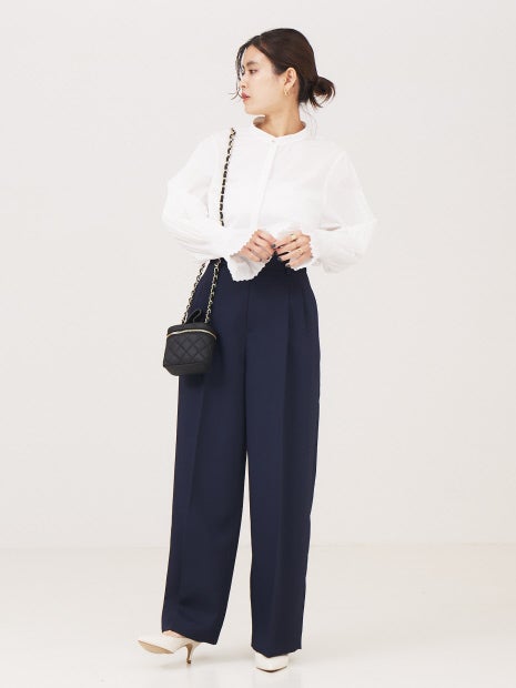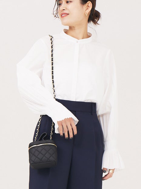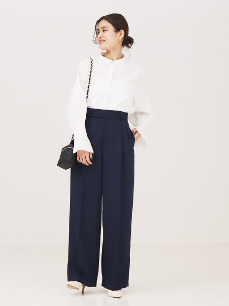 袖のプリーツがフェミニンな印象のブラウス。