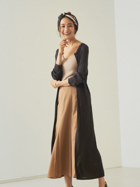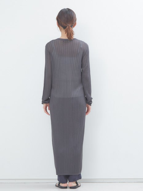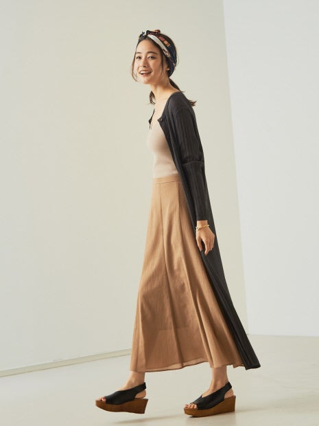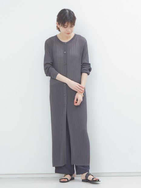 程よい透け感・光沢感のあるロング丈カーディガン。