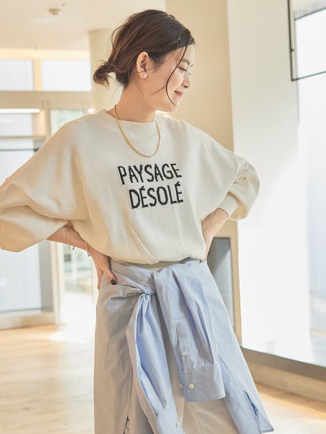 ゆとりのあるシルエットにロゴが際立つニットプルオーバー。