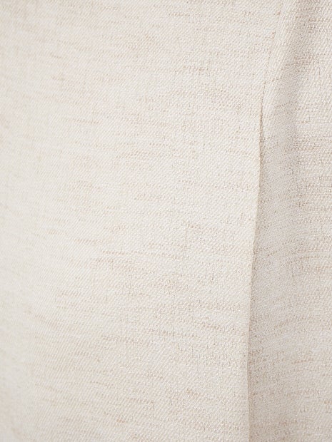 清涼感のある麻ライクなポリエステル素材を使用した、シーズンムードたっぷりなアイテム。