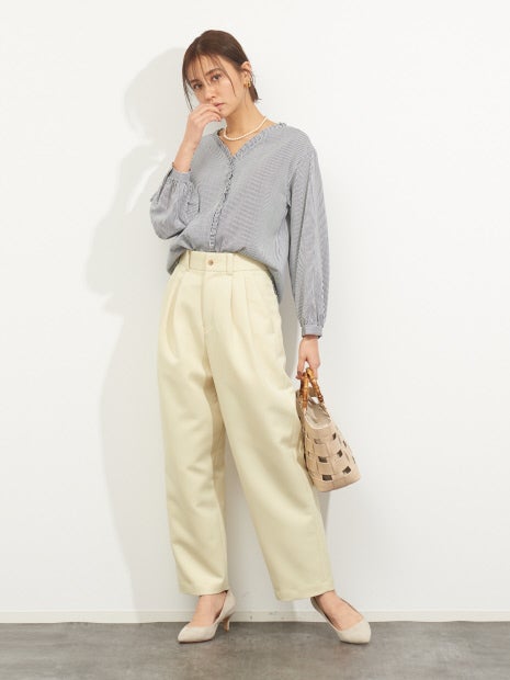 スウェットやオーバーサイズのトップスと合わせて大人カジュアルにも、きれいめブラウスと合わせて通勤スタイルもオススメです。