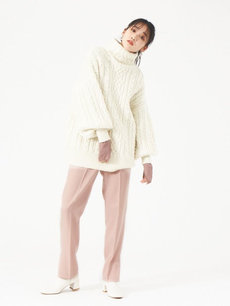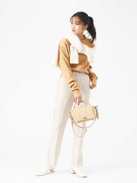 通勤時などの綺麗めスタイルの時はハイゲージニットをインして、ウエスト周りをすっきりさせると、きちんとした印象に♪