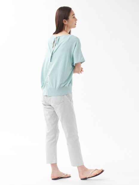 夏の一枚着にぴったりなバックコンシャスニット。