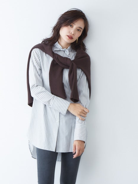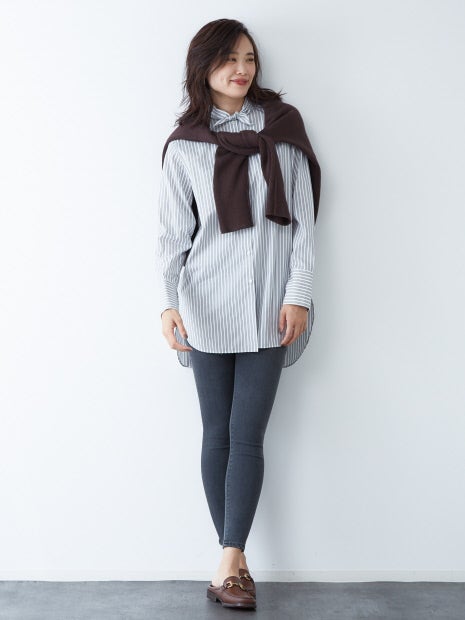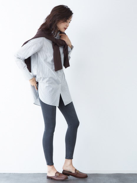 ヒップが隠れる丈感なので細身のパンツとの相性も◎