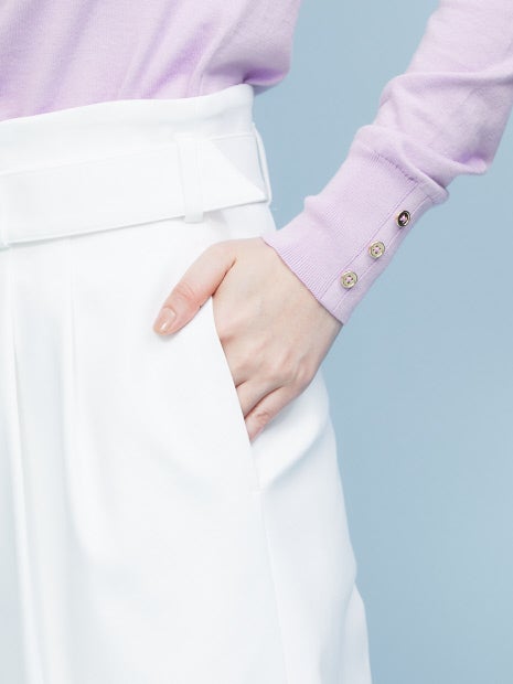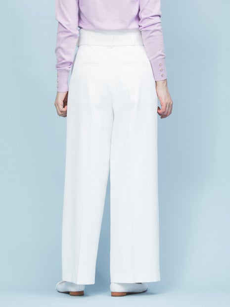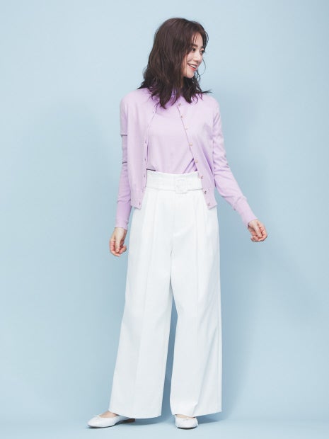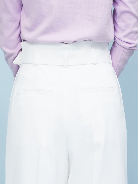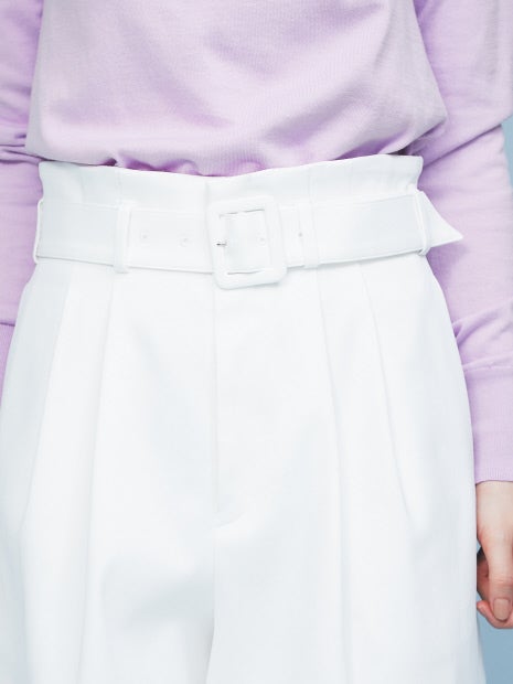 トレンド感漂うハイウエストでバックル付きのワイドパンツ。