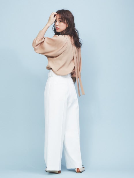 広がり過ぎないシルエットとハイウエストで高めの位置に