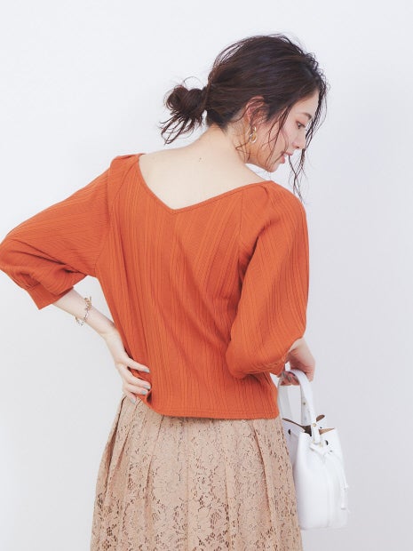 前後2WAYで着ていただくことができ、ボートネックとVネックと、お好みやスタイルに合わせて選んで頂けます。