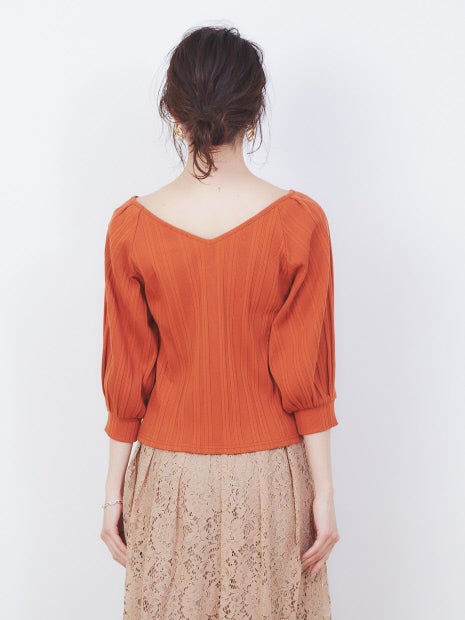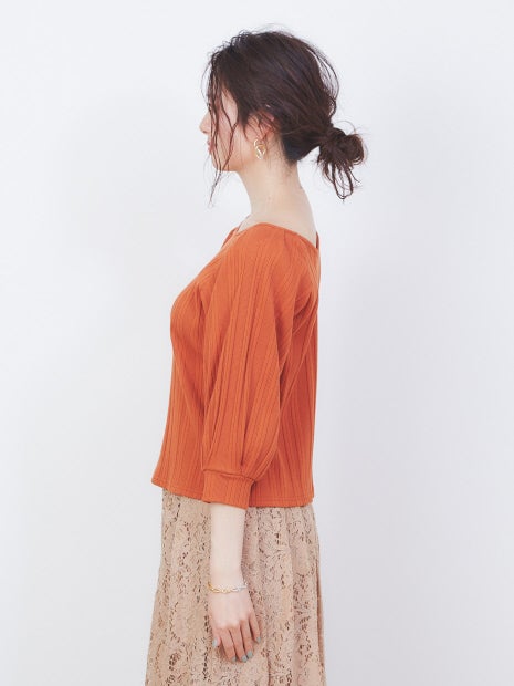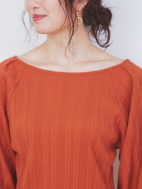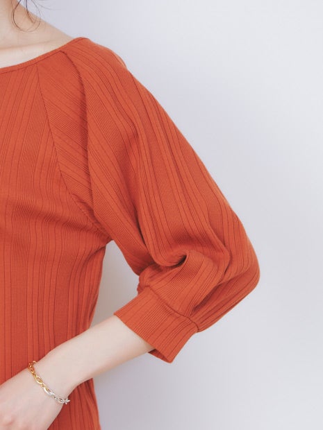 ふんわりとしたボリュームスリーブがポイントの、女性らしいカットソーです。