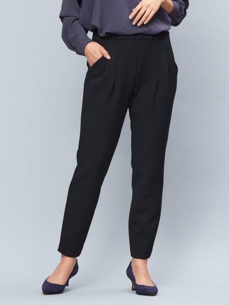 *Detail*テーパードシルエットで腰回りはゆとりがあり、先に向かって細身になるスッキリするデザイン。脚の形を問わず美脚ラインをメイクしてくれる優秀パンツ。ウエストがゴムでありながら、サイズが5サイズあるのでお好みのシルエットを選んでいただけます。お仕事から休日のお出かけまで幅広いシーンで活用できるベーシックパンツだからこそ、自分に合ったベストサイズをお選び頂きたいアイテムです。*Coordinate*ベーシックなテーパードパンツは、お仕事から休日のお出かけまで幅広いシーンで活用。スッキリとしたフルレングスのパンツなので、ボートネックやVネックの女性らしい抜け感のあるトップスと好相性。ルーズなニットとあわせてメリハリのある今年らしいスタイリングがおすすめ。