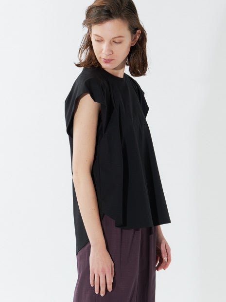 袖にタックをとり、ボリューム感を持たせ、シンプルながら着映えする一着。