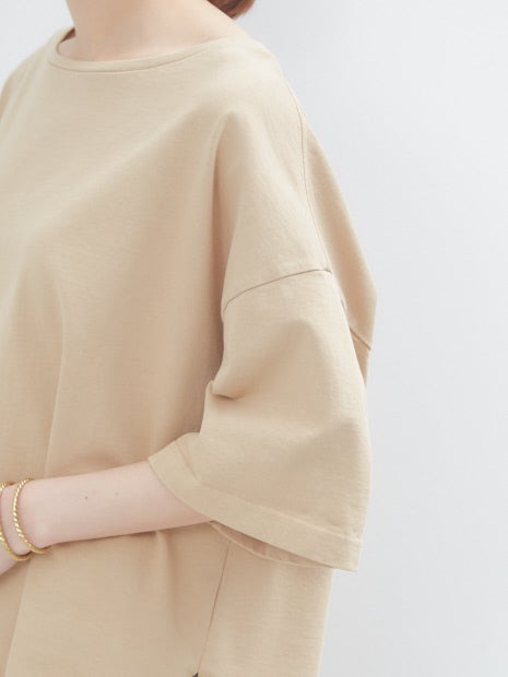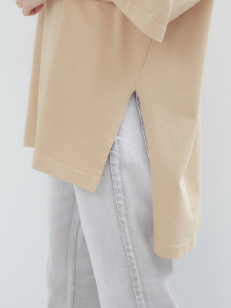 度目の詰まったドライタッチの天竺素材を使用しているので、上品で大人っぽいカジュアル感がポイントです。