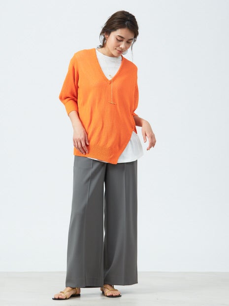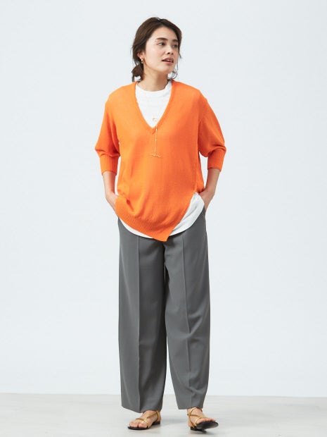 美脚効果が最大に発揮されるトップスインしたスタイルはもちろんですが、パンツ自体のシルエットがキレイなのでアウトスタイルもGOOD!
