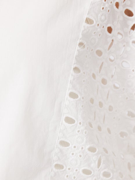 透け感が目立たないよう、身頃に無地のブロードをドッキングしたのもポイント。