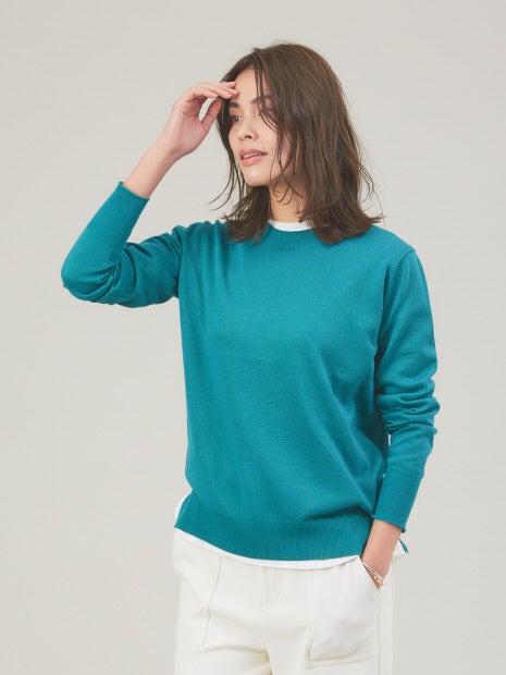・上品に見えるクルーネックは、オフィスでも休日のカジュアルスタイルにもGOOD!