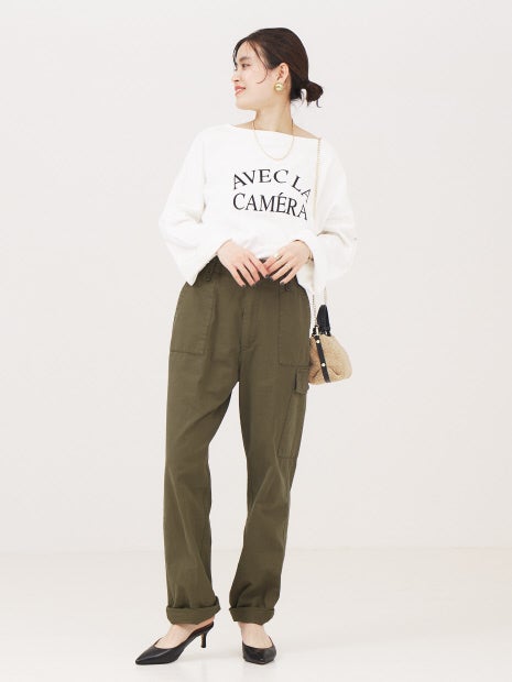 スッキリと広がったボートネックでカジュアルすぎず、女性らしく着られるようこだわりました。