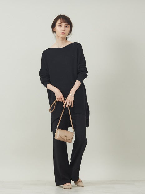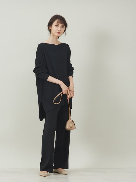 ヒップも完全に隠れる長めの着丈なので、ニットパンツとのバランスが◎