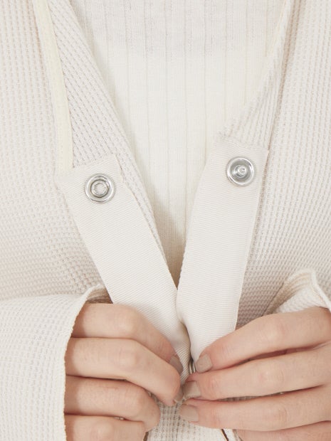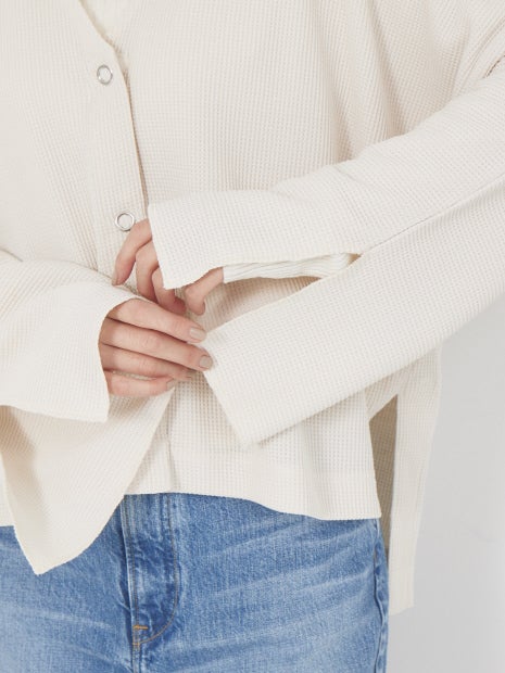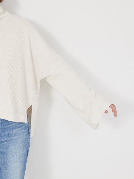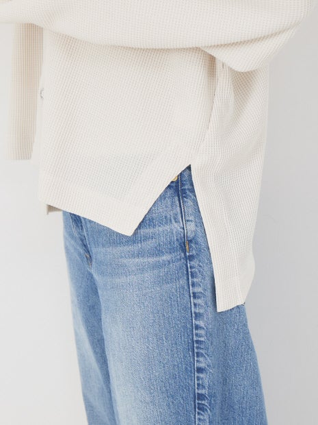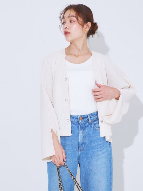 サイドと袖に施されたスリットデザインが抜け感を出し大人な印象に。