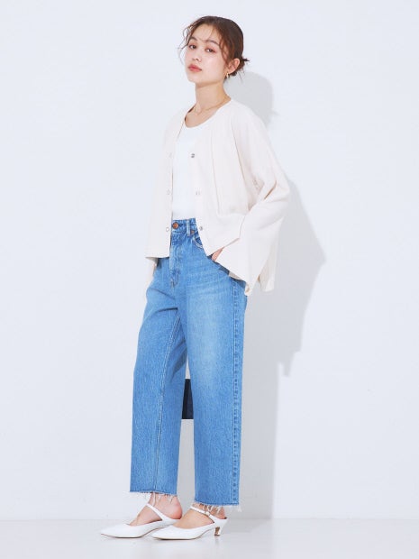 前側の着丈がやや短めなので、ボリュームのあるボトムと合わせてもバランスよく着られてGOOD!