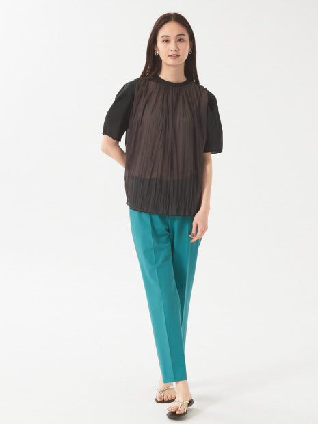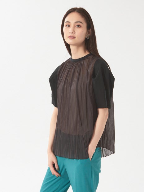 トリコットシフォンのシアー感のある素材にプリーツ加工を施し、表面感を表現。