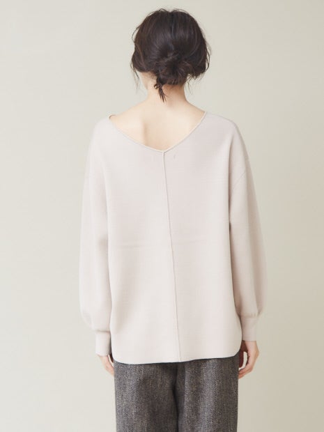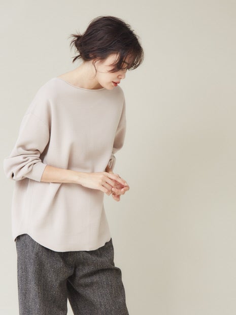 スウェット風ボートネックニットプルオーバー