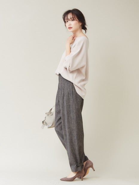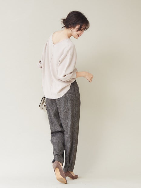 スウェット見えするニット素材で作った大人スウェットは、どこか品のある着こなしを作ってくれます。