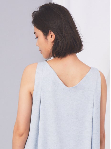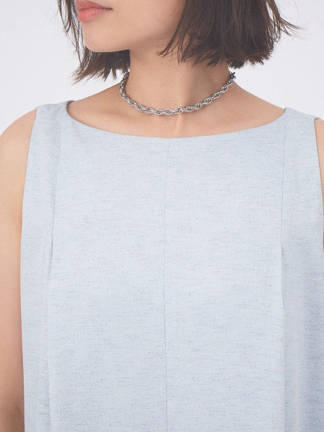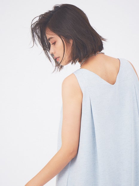 清涼感のある麻ライクなポリエステル素材を使用した、シーズンムードたっぷりなアイテム。