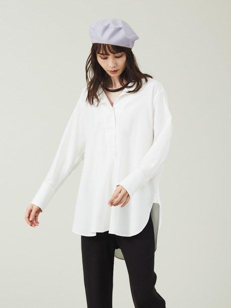 ・ベーシックなコットン素材に襟元にアクセントをつけたシャツ。