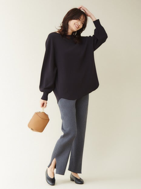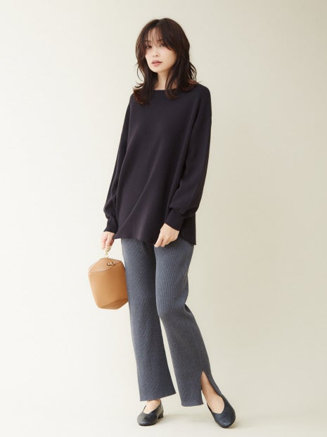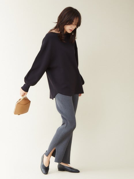 サイドスリットが入っているのでシューズも合わせやすく、フラットパンプスやバブーシュが一押し!