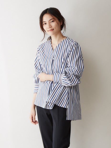 ・立体感のあるVネックラインが首元をスッキリ見せる。