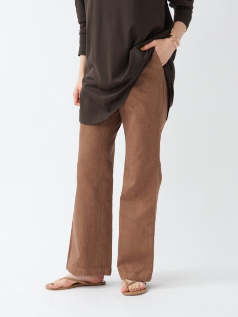 シルエットはストレートシルエットで、足先だけほんのりフレアになっているのもポイント。