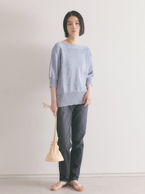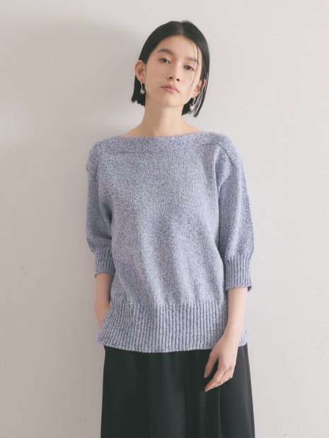 麻のようなドライタッチのコットンで夏まで着られる優秀なニット。