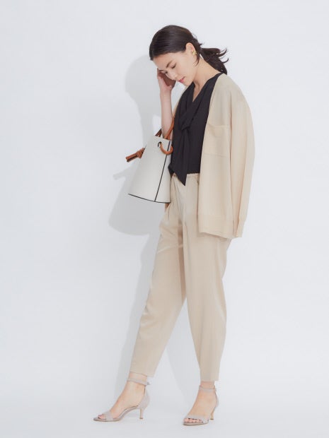 レディーな雰囲気のボウタイブラウスなら、パンツと合わせても女っぽい着こなしに!