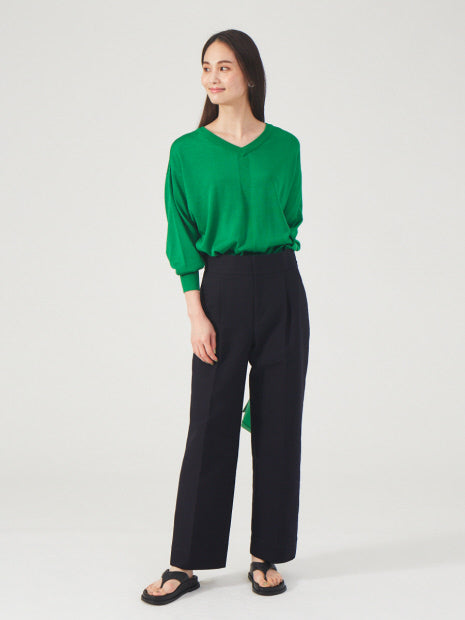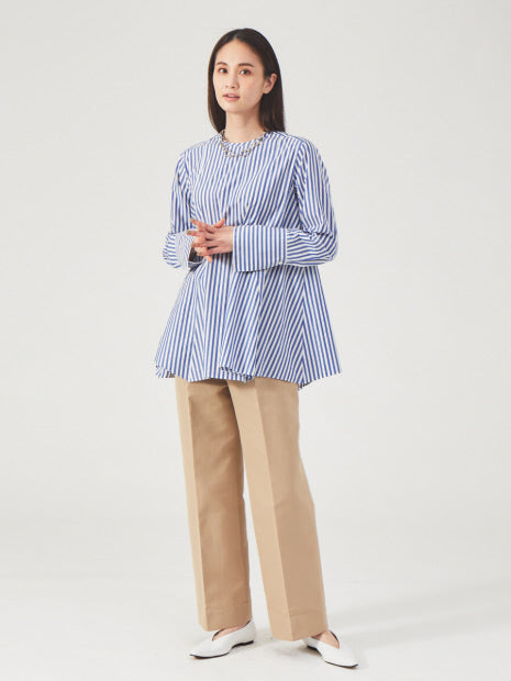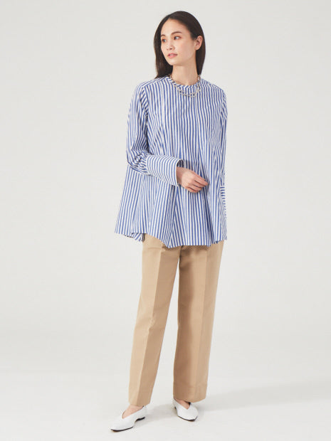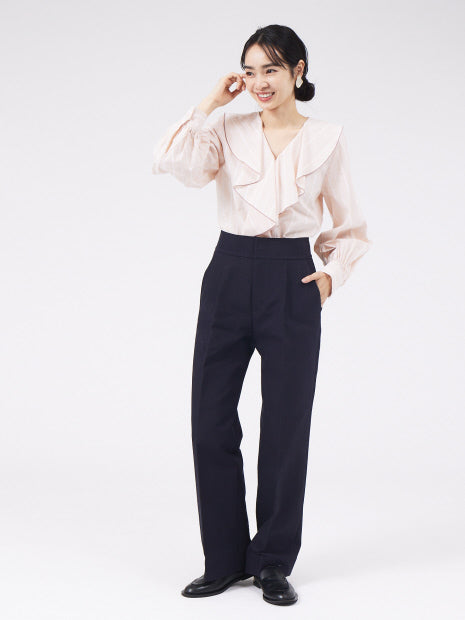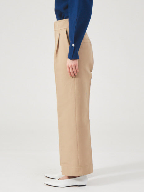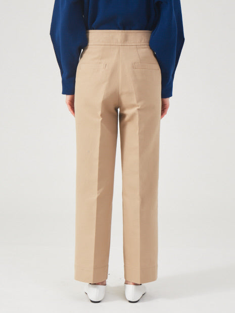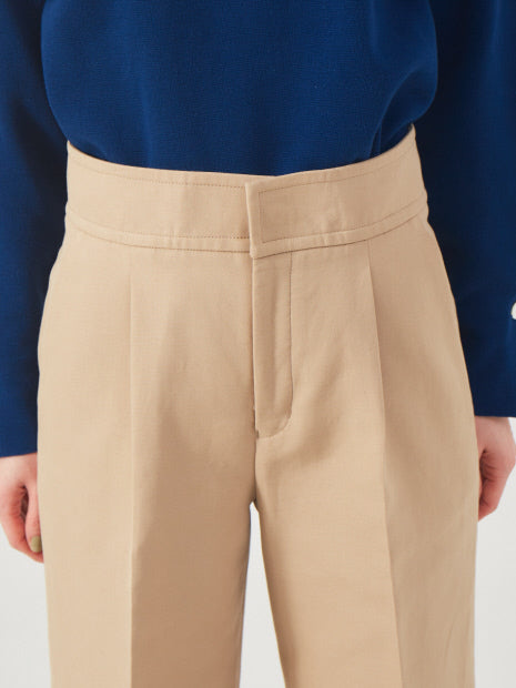 *Detail*春のスタイリングにぴったりなハイウエストコットンパンツ。ストンと落ちるストレートシルエットで美脚&脚長効果も期待できるアイテム。カジュアルになりがちなコットン素材のパンツですが、きれいな表面感できちんと感もある一本に仕上げました。ハイウエストだけど圧迫感がなく、ストレスフリーな穿き心地が魅力。すとんと落ちるストレートワイドシルエットで流行に左右されず、不変的に長くご愛用いただける逸品です。*Coordinate*ベージックなデザインでトップス選ばずで着られる万能な一本。カジュアルになりすぎず、大人の女性にぴったりなアイテム。ベルト幅を広く取ることで、腰回りをすっきりと見せ、インスタイルもきれいに決まります。