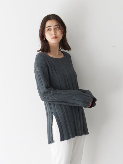 サイドに深めのスリットを施し、ハイウエストパンツとも好相性◎