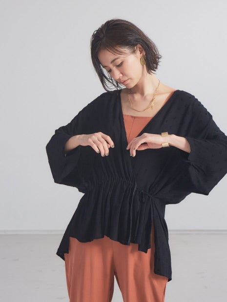 シフォン素材の軽やかさとドビードットのフェミニンさで、女性らしい着こなしが楽しめます。