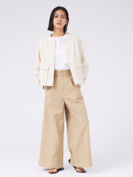 前にタックを施したことで、気になるウエスト周りの肉感は拾わず、楽な穿き心地ながら、シルエットが綺麗に見えるよう拘りました。