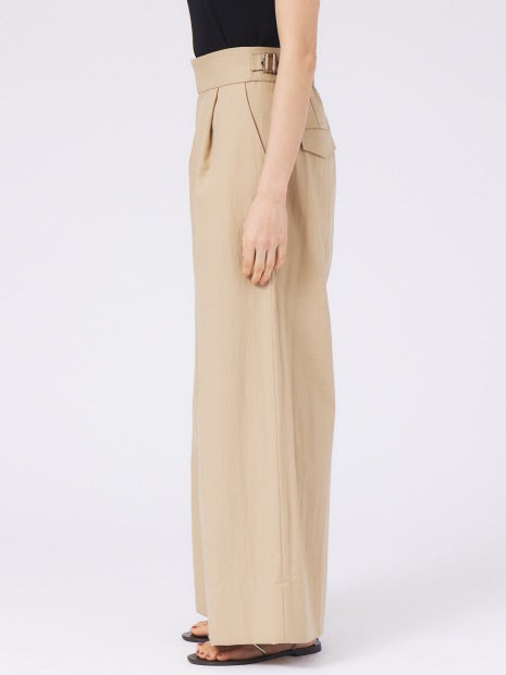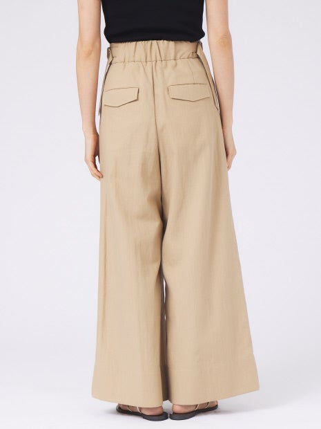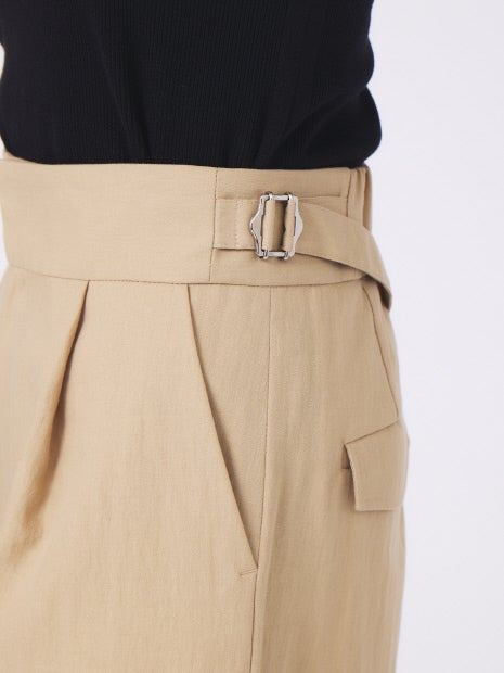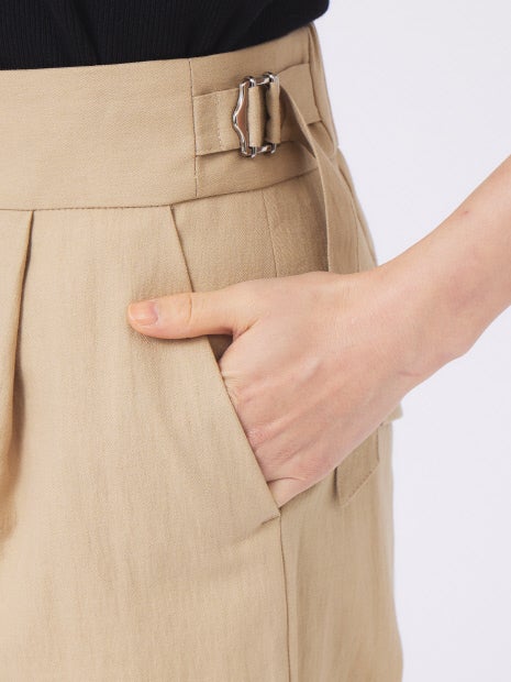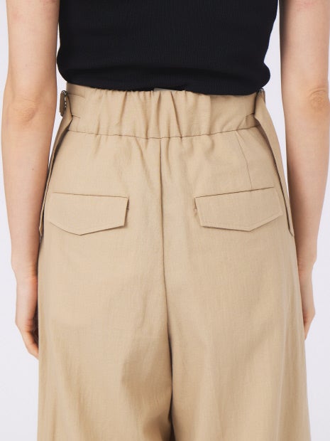 ウエストのサイドにベルトバックルを付けたため、サイズ調整も可能です。