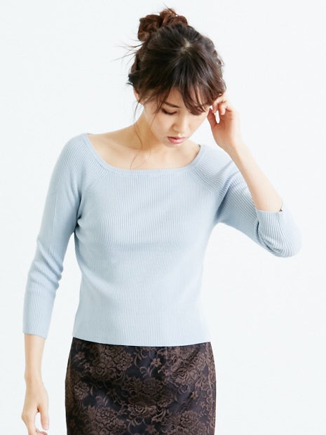夏から秋にかけてさらっと着られる肌触りのニットップス。ツヤがある滑らかな糸を使用しているので、きれいめな着こなしにぴったり。身体のラインにほど良くフィットしているので、ボトムにインした着こなしがおすすめ。肩に乗りつつデコルテラインをきれいに見せてくれるオフショルダーなので、女性らしい着こなしにぴったりです。