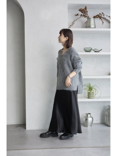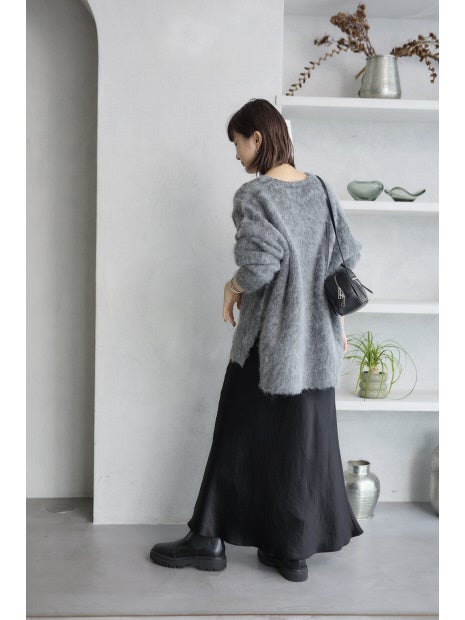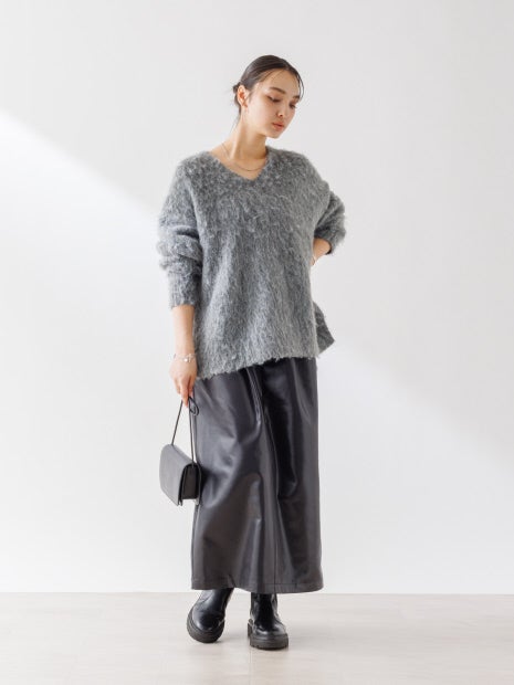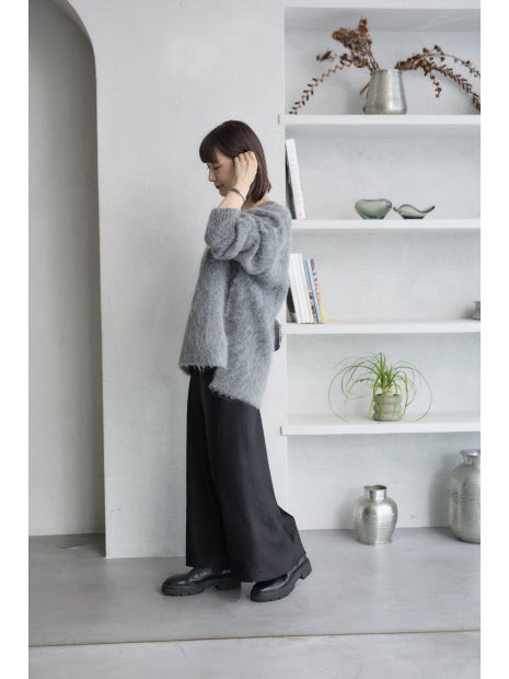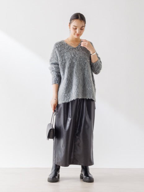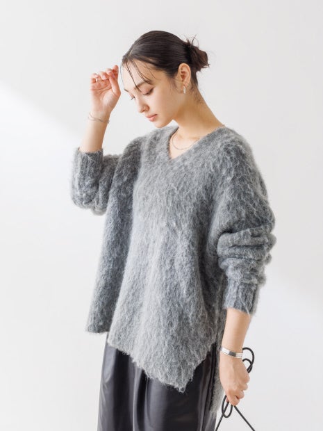 ソフトな肌触りのニットをシャギー起毛加工した一枚で着映えするデザイン。
