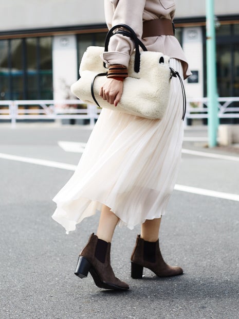 冬にはふんわりとしたニットとの合わせもおすすめですが、ニットの毛が付きづらいのも嬉しいポイント。