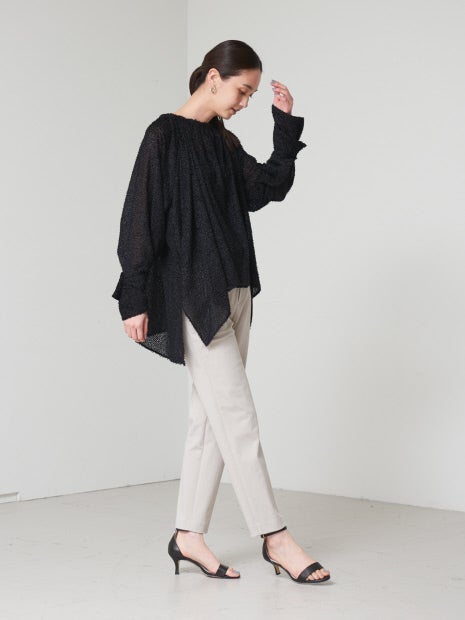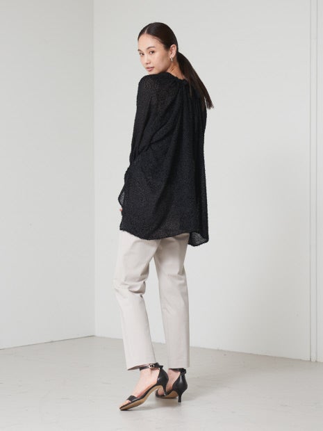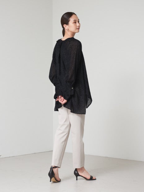 表面感のあるカットジャガード素材が上品な印象を与えてくれるブラウスは、デイリーにはもちろん、お仕事シーンやちょっとしたパーティーシーンにもぴったり。