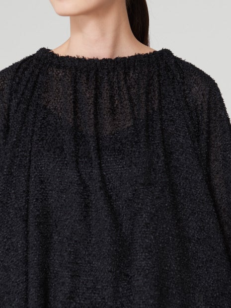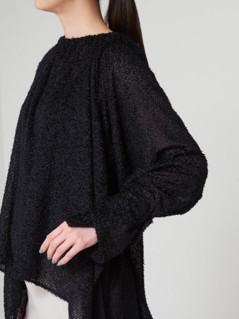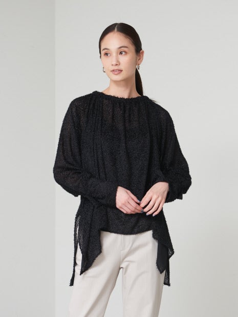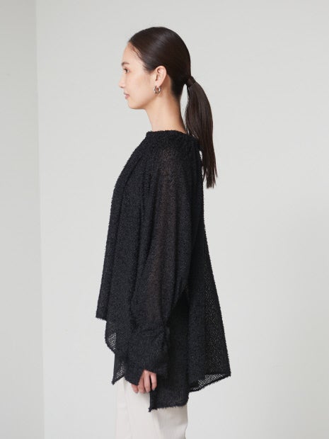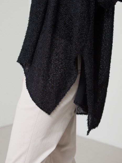 カットジャガードという手法のフワフワなファー見えすると表面と、透け感で抜け感ときちんと見えを叶えます。