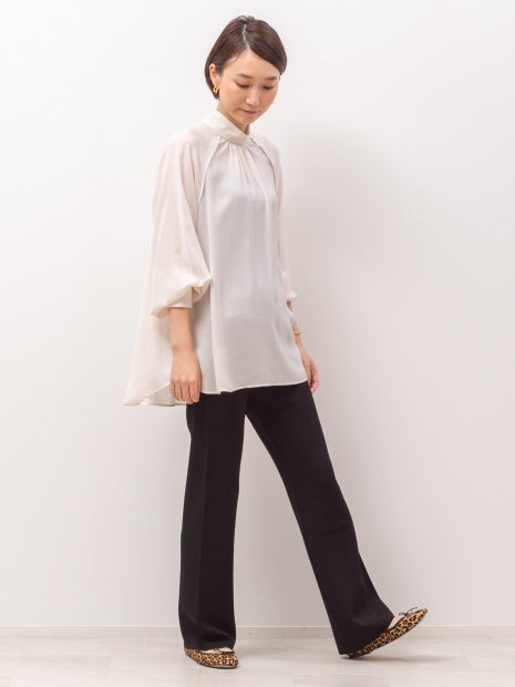 カジュアルな印象のニットパンツも、きれいめな印象に仕上がるのでONでもOFFでも着ていただけます。