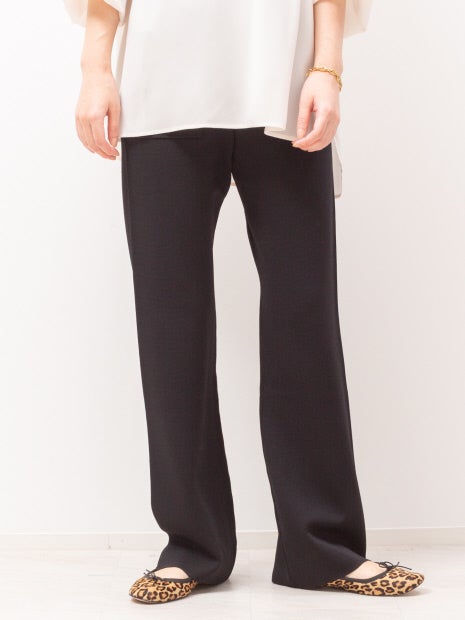 高級な光沢感と感触の良いストレッチ感、滑らかで落ち感のある素材を使用したニットパンツ。