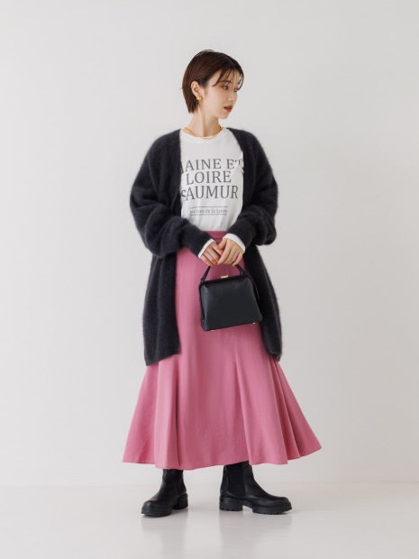 ニュアンスのあるゆったりニットでも、コンパクトなリブニットでも合わせやすく、ON・OFFで活躍。セミマットな光沢感でロンTやスウェットと合わせてもカジュアル過ぎずに大人っぽい印象に。また毛足のあるニットとも相性抜群で素材感にコントラストがつき、着映えます!